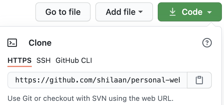 ☞︎︎ Copy paste the HTTPS link under Repository URL